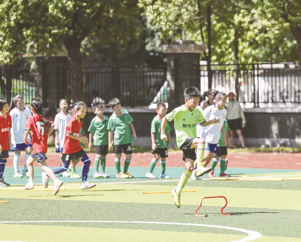 浙江省诸暨市陶朱小学足球队员开展新学期首训。(徐昱/摄)