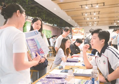 ▲在湖南省衡阳市南华大学秋季校园招聘会上,求职者咨询了解岗位信息。(曹正平/摄)