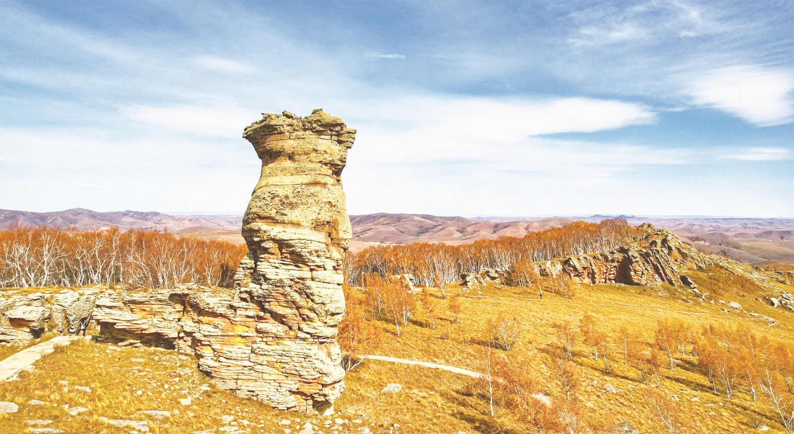 驱车穿越广袤的草原,远处,一座座山峰渐渐显露轮廓,那是大兴安岭的余脉,在这片群山之中,隐藏着一片令人叹为观止的奇观——阿斯哈图石林。随着车辆缓缓靠近,眼前的景象逐渐清晰,一块块巨石拔地而起,错落有致地分布在山脊之上,静静地诉说着千年的故事。