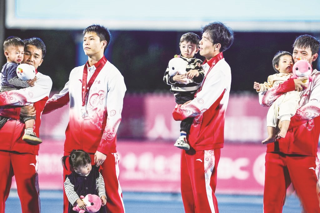 广东队选手和亲属共同参加颁奖仪式。(陶亮/ 摄)