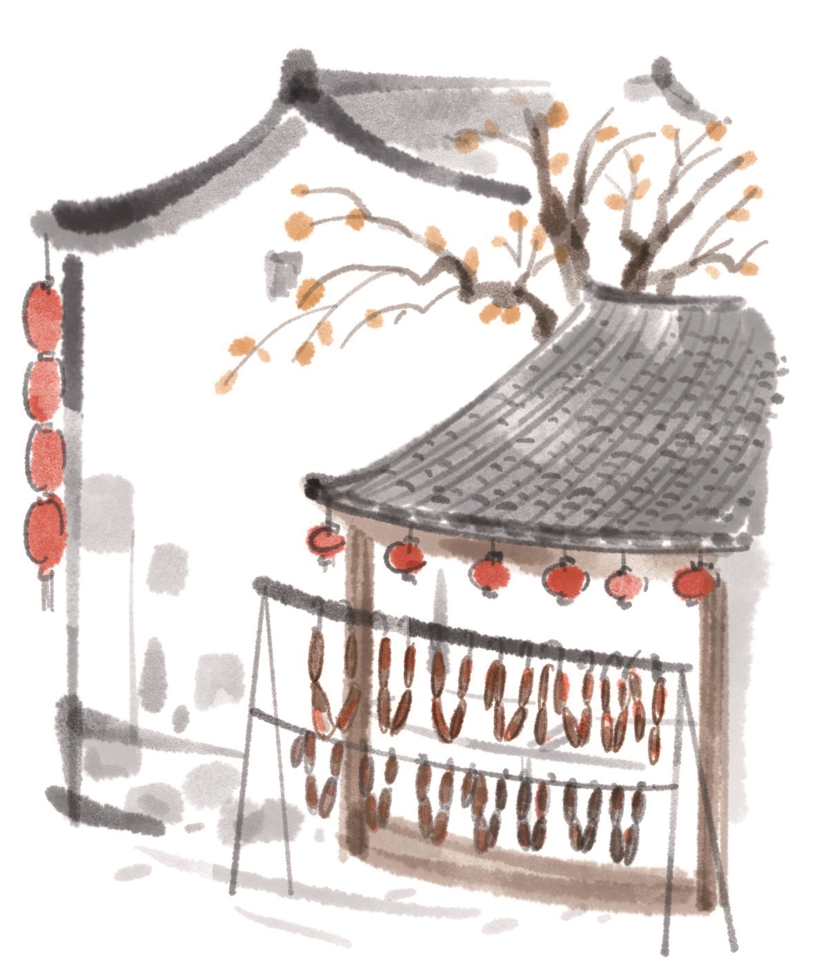 我曾在腊月时节拜访过安昌古镇,一来到这里,就像进入了一幅水墨长卷。青石板路被磨得发亮,两侧的民居白墙黛瓦,乌篷船摇着橹桨从桥下缓缓划过,搅碎了水面的光影,漾起满河的温柔涟漪。然而,最先缠住人脚步的,是那空气中弥漫的腊肉香,咸香氤氲,引人不由自主地追寻其踪迹。抬眼望去,只见街边的廊檐下、窗棂旁,甚至临河的栏杆上,都挂满了一串串饱满圆润的腊肠,在冬日暖阳下泛着油润光泽,与晾晒的酱鸭、鱼干一同成了古镇最鲜活的岁末符号。