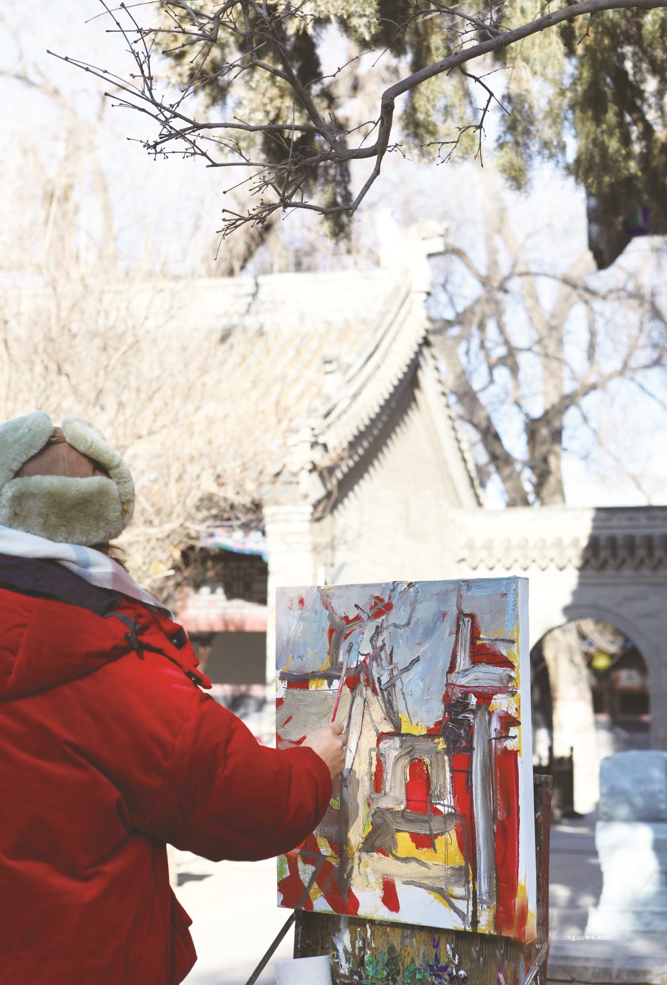 活动现场,画家们或在庭院支起画板,或在一边细细观察,有人用细腻的线条勾勒古建筑的精巧,有人采用撞色手法将现代艺术元素融入古建筑轮廓,随着画笔的不停舞动,将军衙署的飞檐斗拱渐渐有了温度,引得路过的游客纷纷驻足观看。