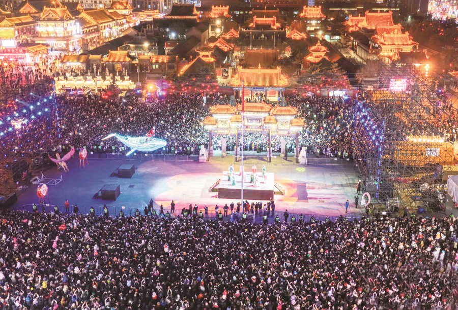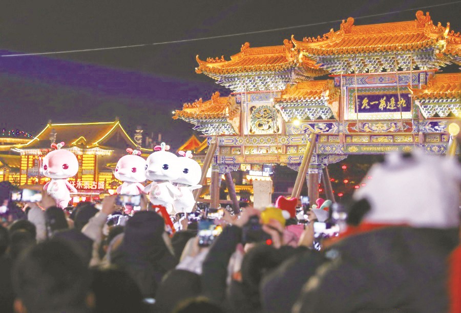呼和浩特市玉泉区塞上老街旅游休闲街区跨年夜活动现场游人如织。(丁根厚/ 摄)