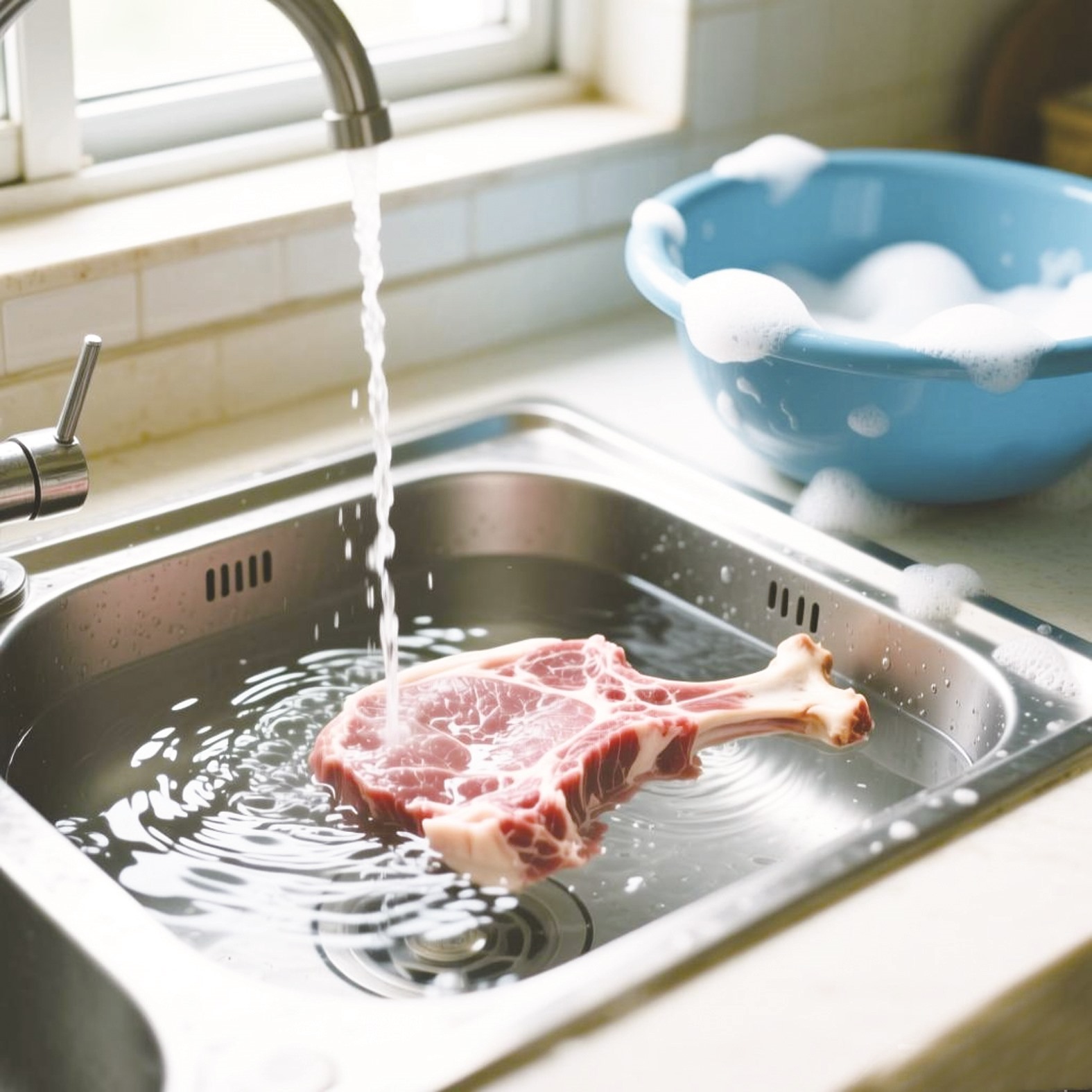 把冷冻肉泡进水里或用水冲,看似操作简单,解冻速度也较快,但事实上,不仅会让肉的品质下降,还存在安全风险。