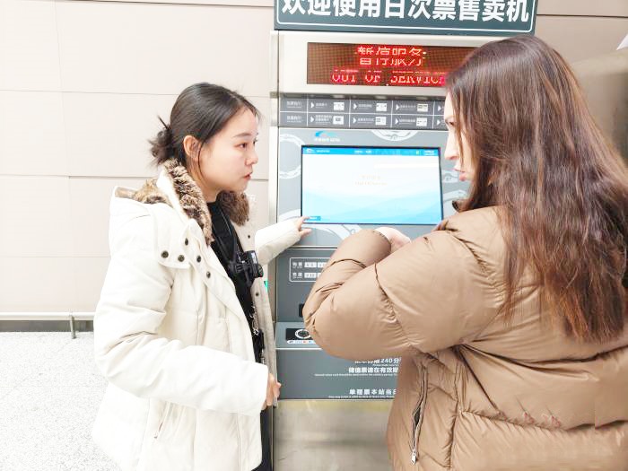“我属于‘主动出击’型,看到外国人就主动上前介绍自己是志愿者,他们防备心会降低很多。”张玲玲的服务流程很清晰:主动询问需求,推荐天府广场、人民公园等热门景点,帮忙购票,告知转乘路线。虽然核心话术相对固定,但每次沟通都是实战锻炼。遇到“单程票”这类不会的表达,她会当场记下,事后查询学习,保证每天至少能积累10个实用句式。