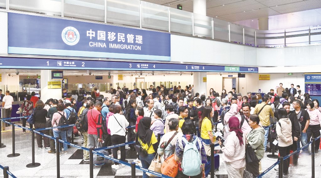 ▲1月17日,入境旅客在海口美兰边检站排队等待办理边检手续。(杨冠宇 /摄)