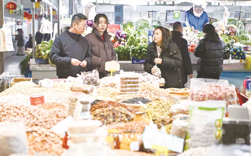 呼和浩特市民在保全庄农贸市场内选购干果。(牛天甲/摄)