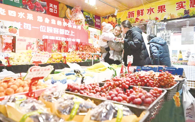 呼和浩特市民在保全庄农贸市场内挑选水果。(牛天甲/摄)