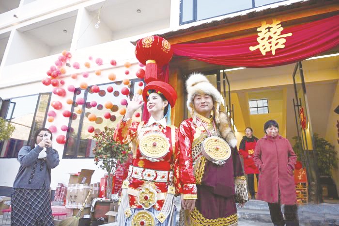 “我们把一些现代元素融入传统婚礼,让亲朋好友体验更丰富,但我们没有丢掉传统的民族文化。”和云雷说。