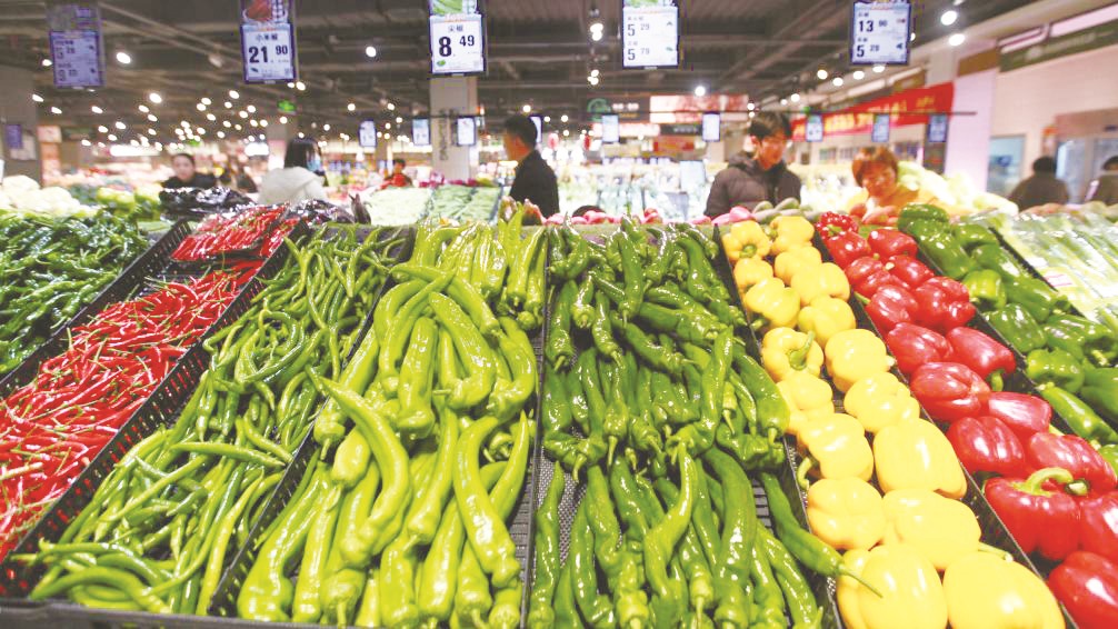 ▲消费者在山东省临沂市平邑县一家超市选购蔬菜。 (武纪全 /摄)