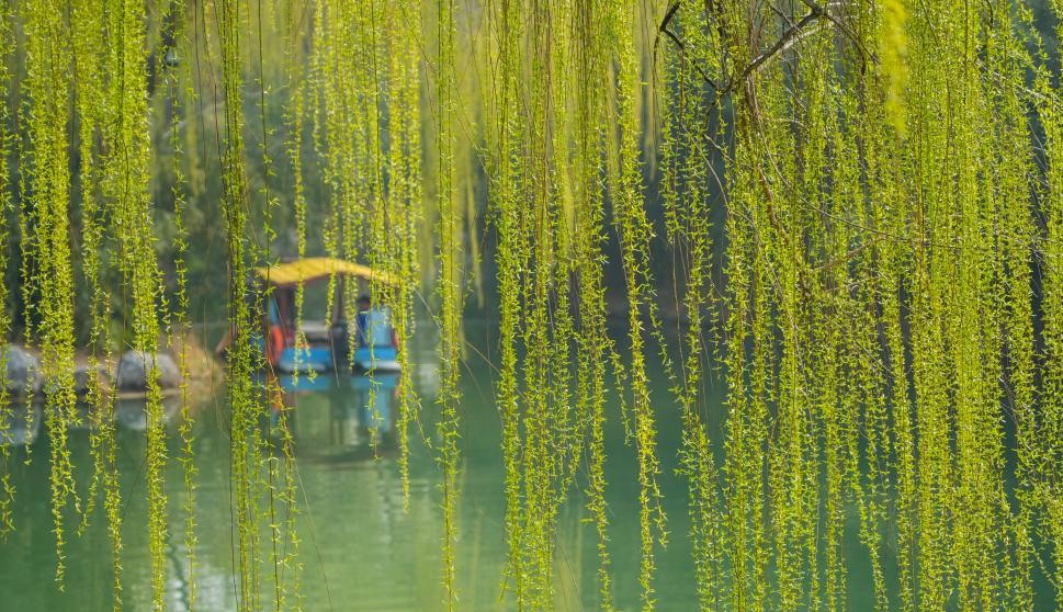 ▲山东济南大明湖的柳树披上新绿。(徐速绘/ 摄)