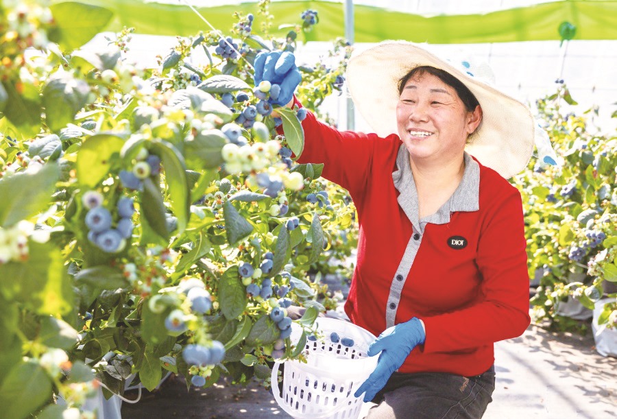 早春时节,内蒙古呼和浩特市玉泉区后本滩村蓝莓种植基地迎来丰收,工人们正忙着采摘、分拣、装箱,供应市场。这个基地采用全基质无土栽培、物联网远程控制、数字传感器、温湿度自动调节通风、智能水肥一体化滴灌系统等智慧农业技术,为蓝莓营造了稳定的生长环境,能够保证果实品质,提高生产效益。