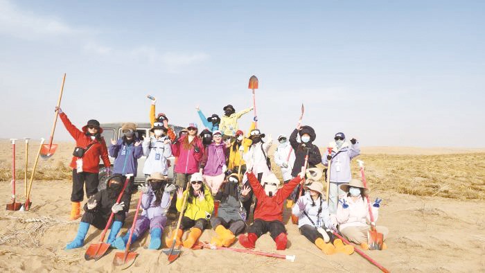 “一天连续的弯腰、下蹲,身体有些累,但看到沙漠中点点绿意,成就感满满。”30岁的司徒凯馨说,看到一望无垠的沙漠,人的心胸也变得开阔;和当地村民一起生火做饭、治沙植树,生活变得简单而满足。